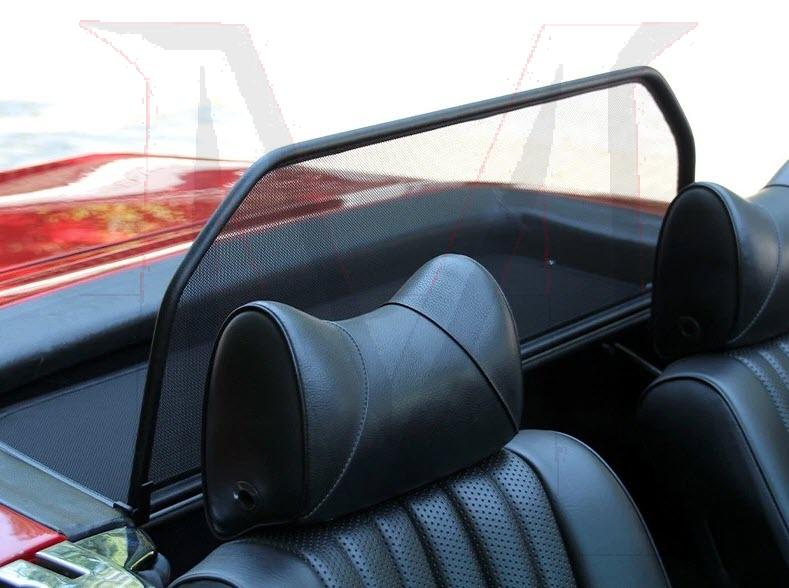AVAIL 4-5 DAYS FROM GERMANY METAL FRAMED, FINE BLACK MESH SCREEN MOUNTED BEHIND SEATS ATTACHED TO SOFT TOP COMPARTMENT LID TO REDUCE DRAFTS AND WIND NOISE. ALLEVIATES BACK DRAFT AND WIND BLOWN LOOK. EASILY REMOVED AND FOLDS FOR EASY STORAGE IN TRUNK.